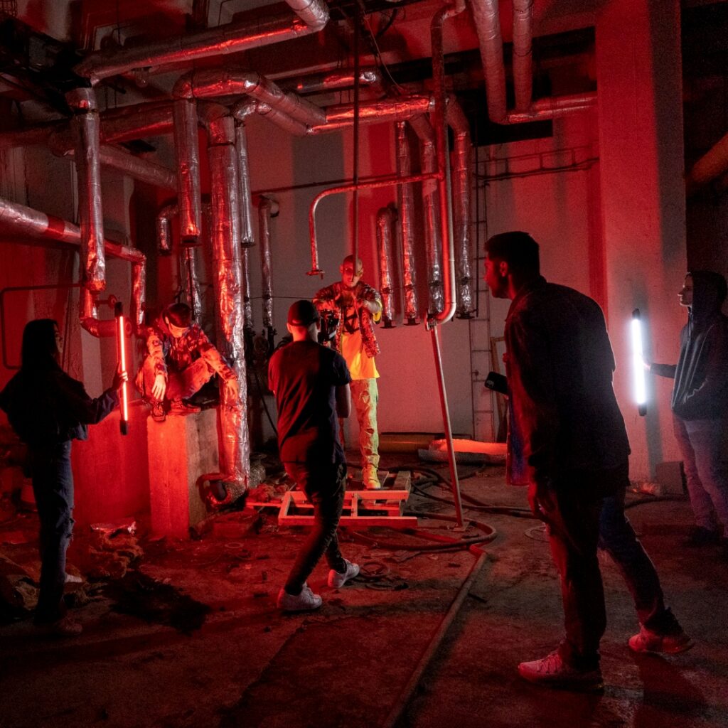 The visual identity is driven by real graffiti, expanding across the space as the video progresses. Combined with contrasting industrial scenes and red-lit textures, it creates a tension between control and chaos. In the final moment, the act of spraying directly into the lens breaks the barrier between the artist and the viewer, turning the image itself into part of the expression.