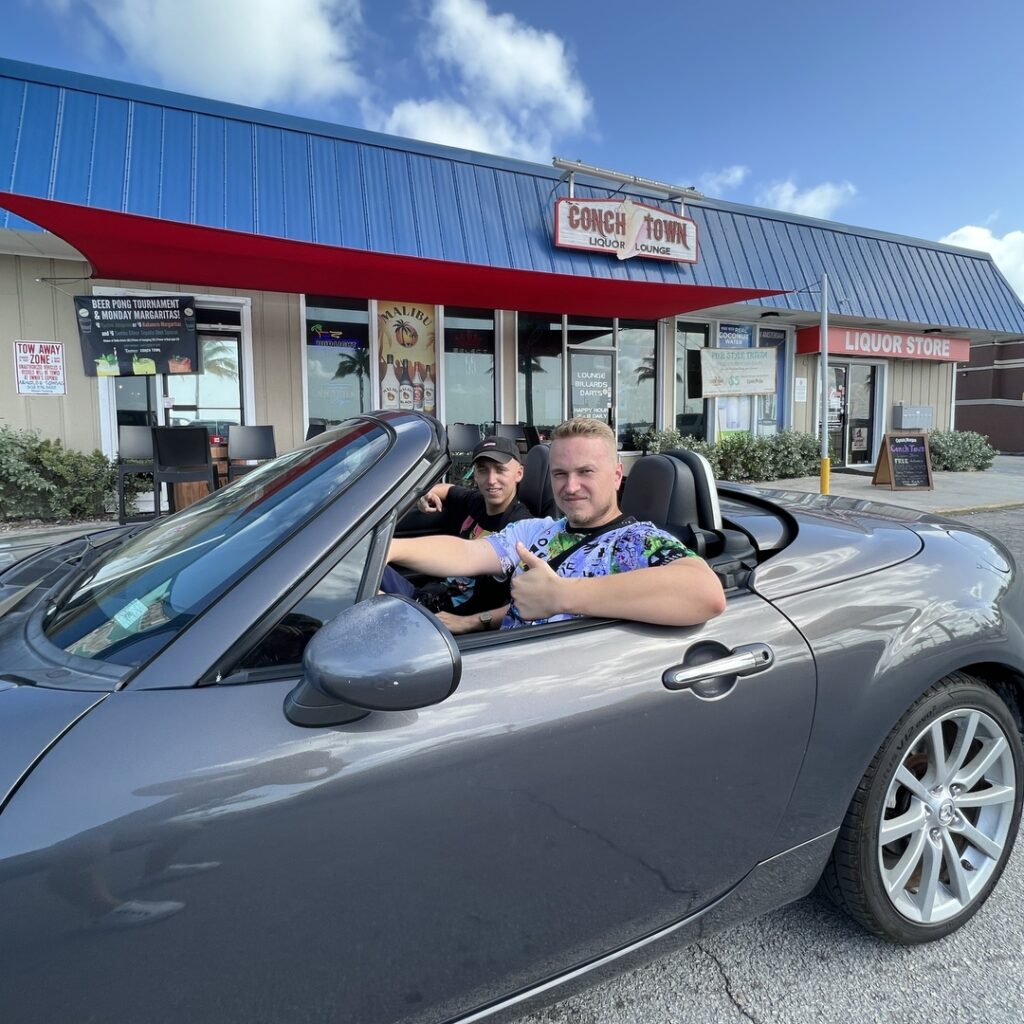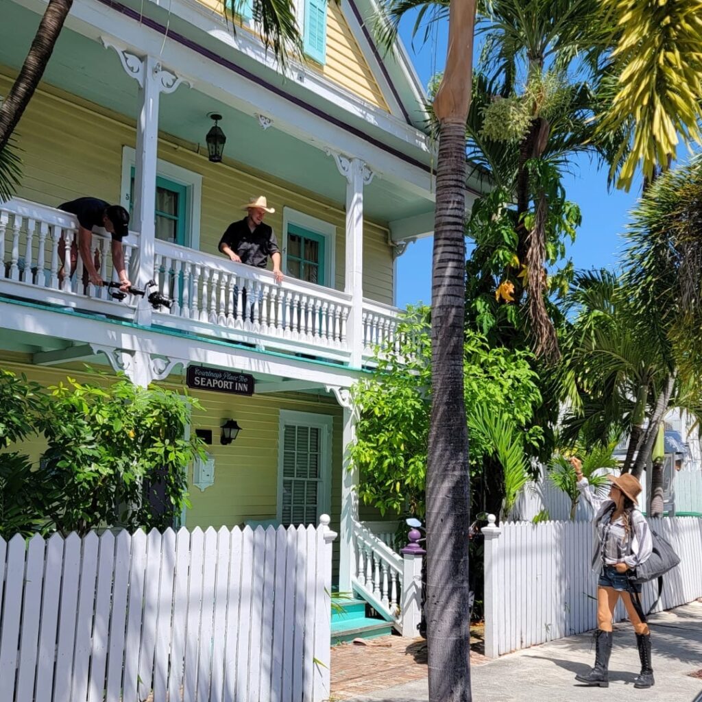Iconic places of Key West, including the legendary Flag Man Douglas Miller running through the streets with the American flag. Mark Voss wears a hat that once belonged to a late local motorcyclist from Tattoos & Scars Saloon, adding a real layer of local history and character to the story.
